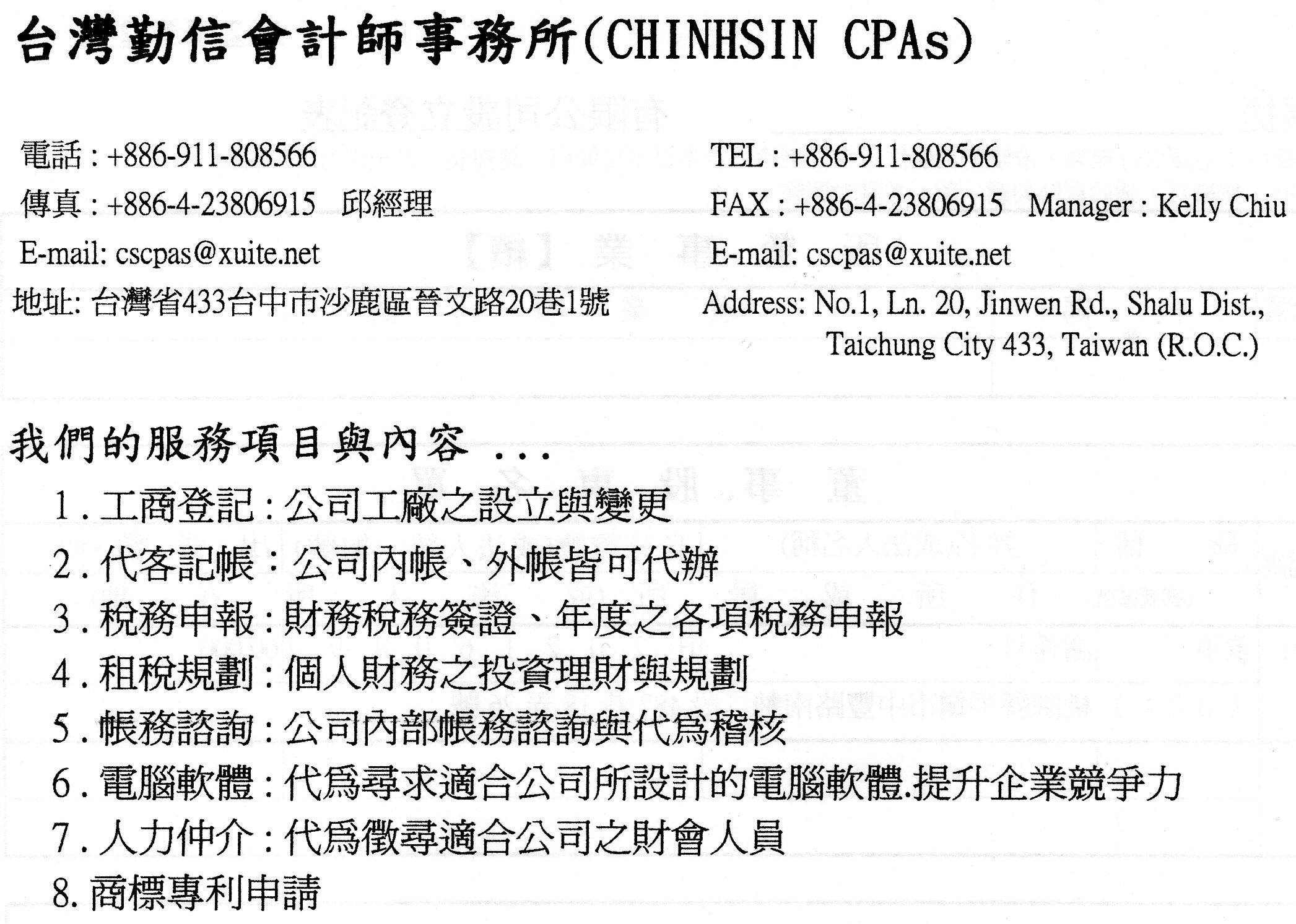 台灣會計師事務所(Taiwan Chinhsin CPAs) 台灣公司註冊.會